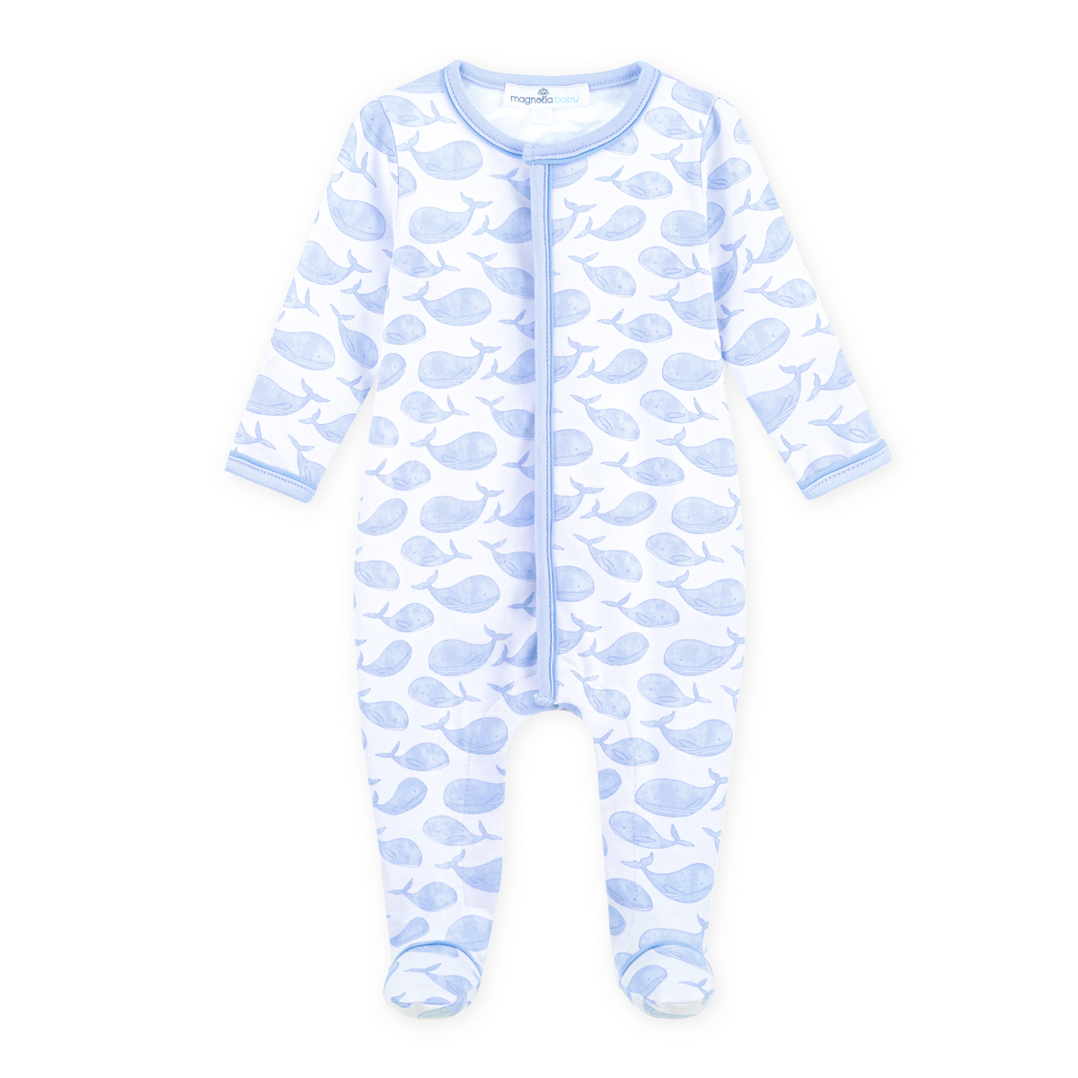 Azure Whales Print Footie | Blue