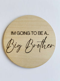This beautiful wood disc is the perfect way for your little to announce that they have been promoted to big sis/bro!